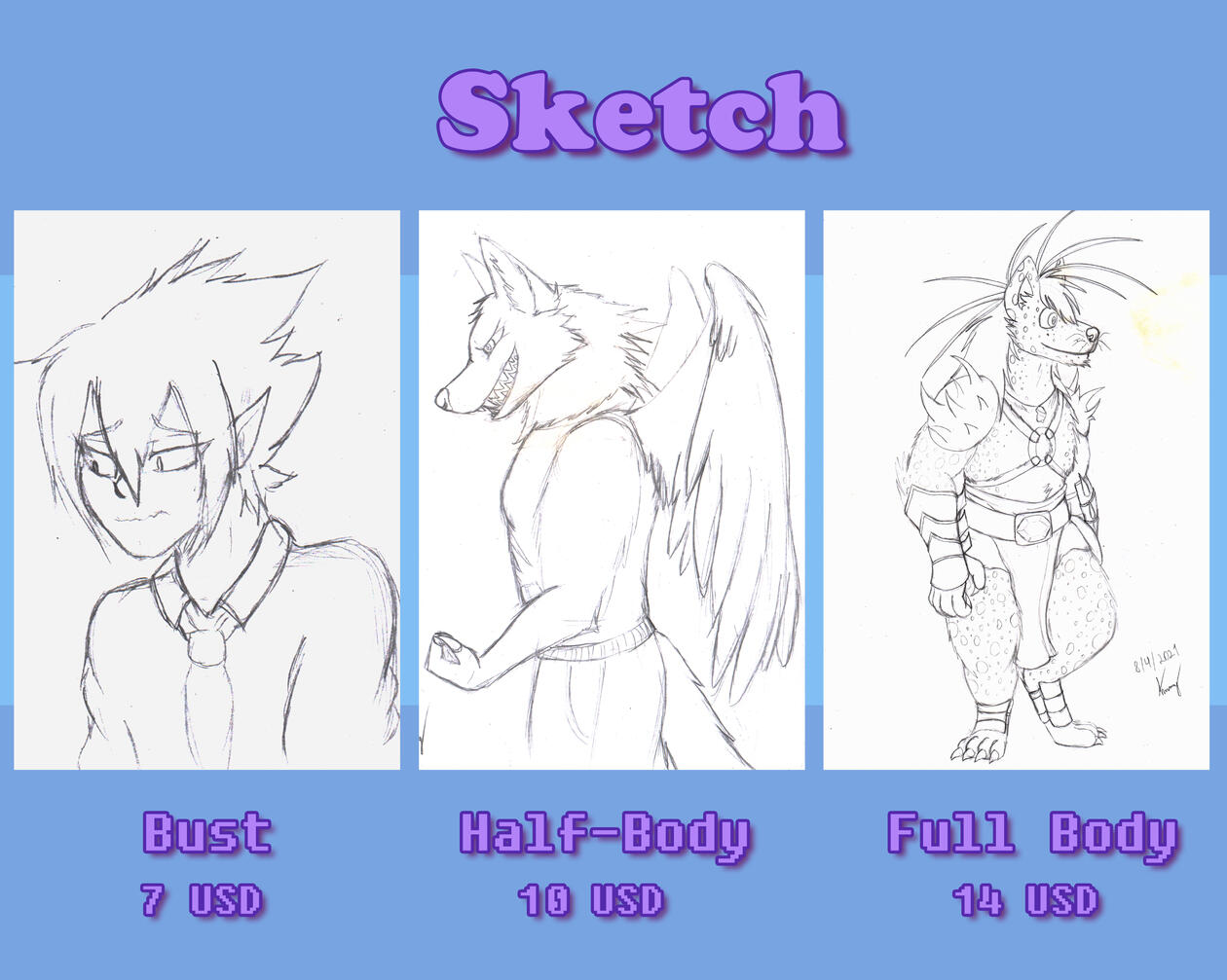 Full NSFW w/ genitals - 50 USD---------------------------Those prices are just general guidelines and can be negotiable.All prices listed above are additive to the main price table. For exemple, if you want a lewd drawing of a half body, fully colored with markers, the total price would be 20 USD (full color half body) + 5 USD (Markers) + 30 USD (Lewd drawing) = 55 USD in total.