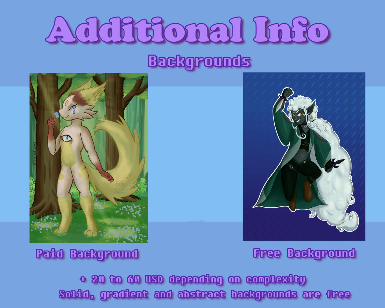 Overly Complex backgrounds---------------------------I will let you know if there's anything out of my skill range or if I'm uncomfortable with drawing!Please provide descriptions/references for your characters!!Feel free to contact me if you have any questions! You may contact me/request the commissions on: